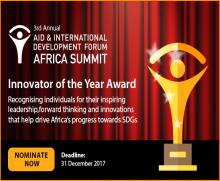 The Aid & International Development Forum is currently accepting nominations for the Innovator of the Year Award. The competition aims to recognise individuals for their inspiring leadership, creative problem-solving and implementation of innovative programmes that have helped drive Africa’s progress towards SDGs. The winner will be announced at the Aid & Development Africa Summit on 28th February 2018 in Nairobi, Kenya. To make a nomination and for more information, click here.