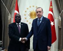 Cumhurbaşkanı Recep Tayyip Erdoğan, Gambiya Cumhurbaşkanı Adama Barrow ile Cumhurbaşkanlığı Külliyesinde gerçekleştirdikleri baş başa ve heyetler ar